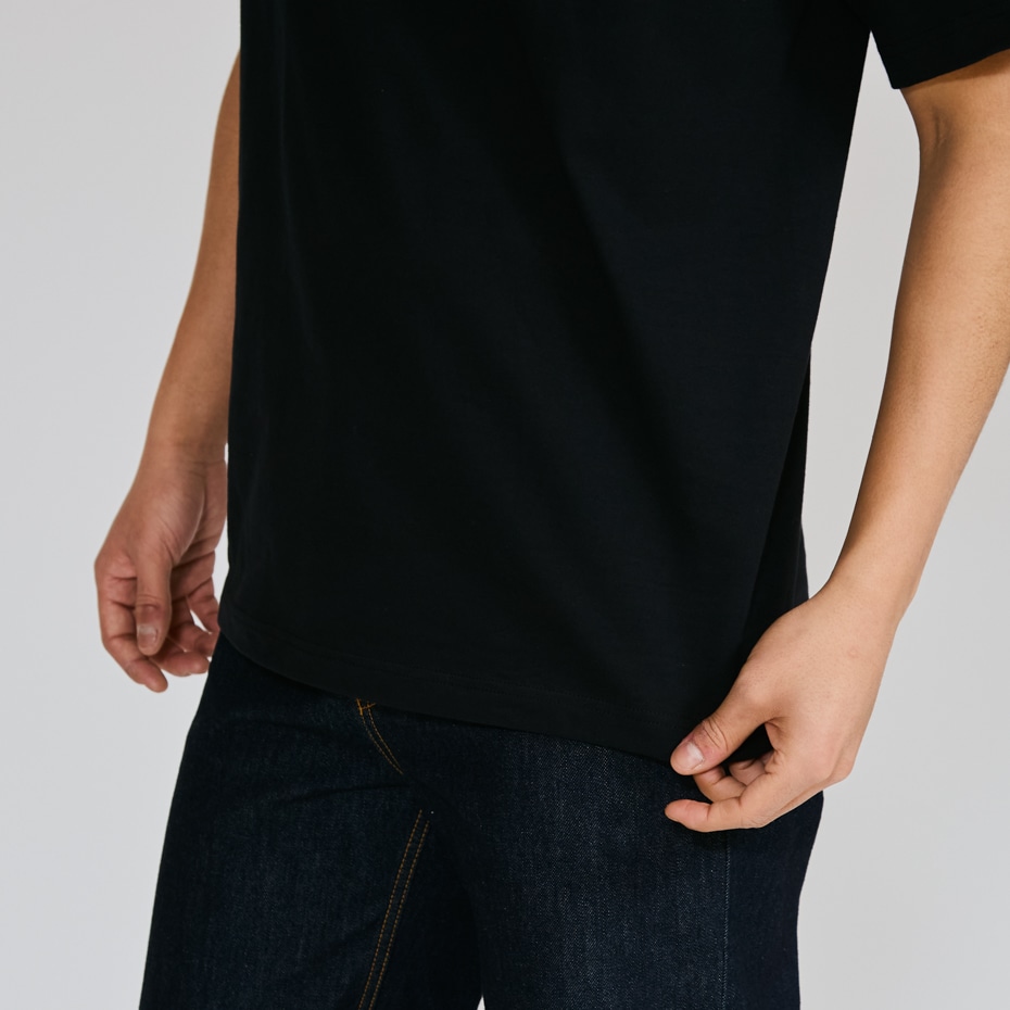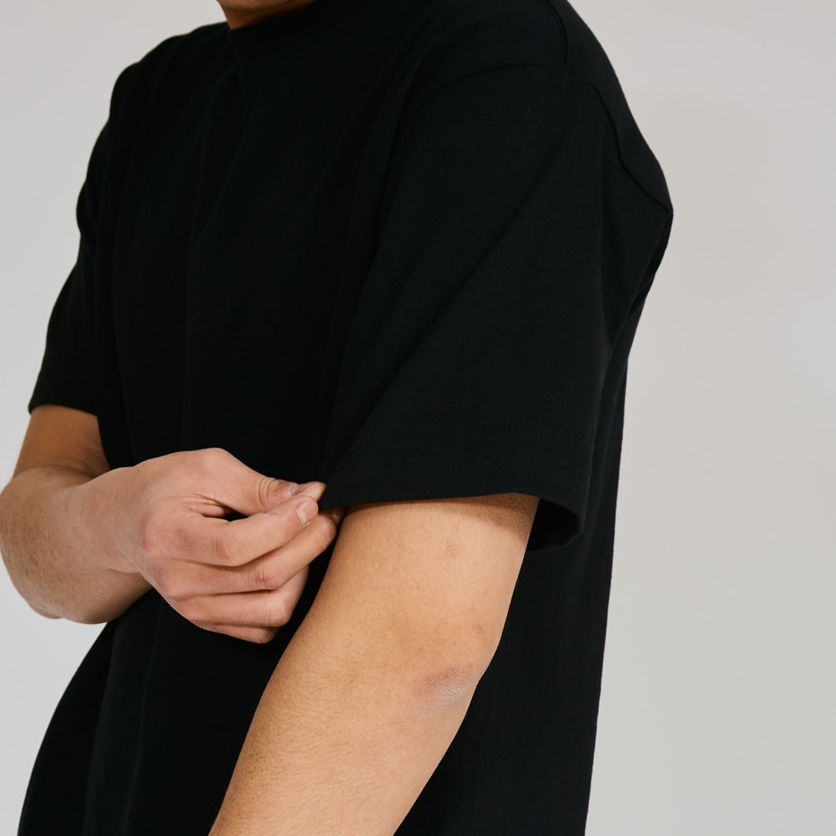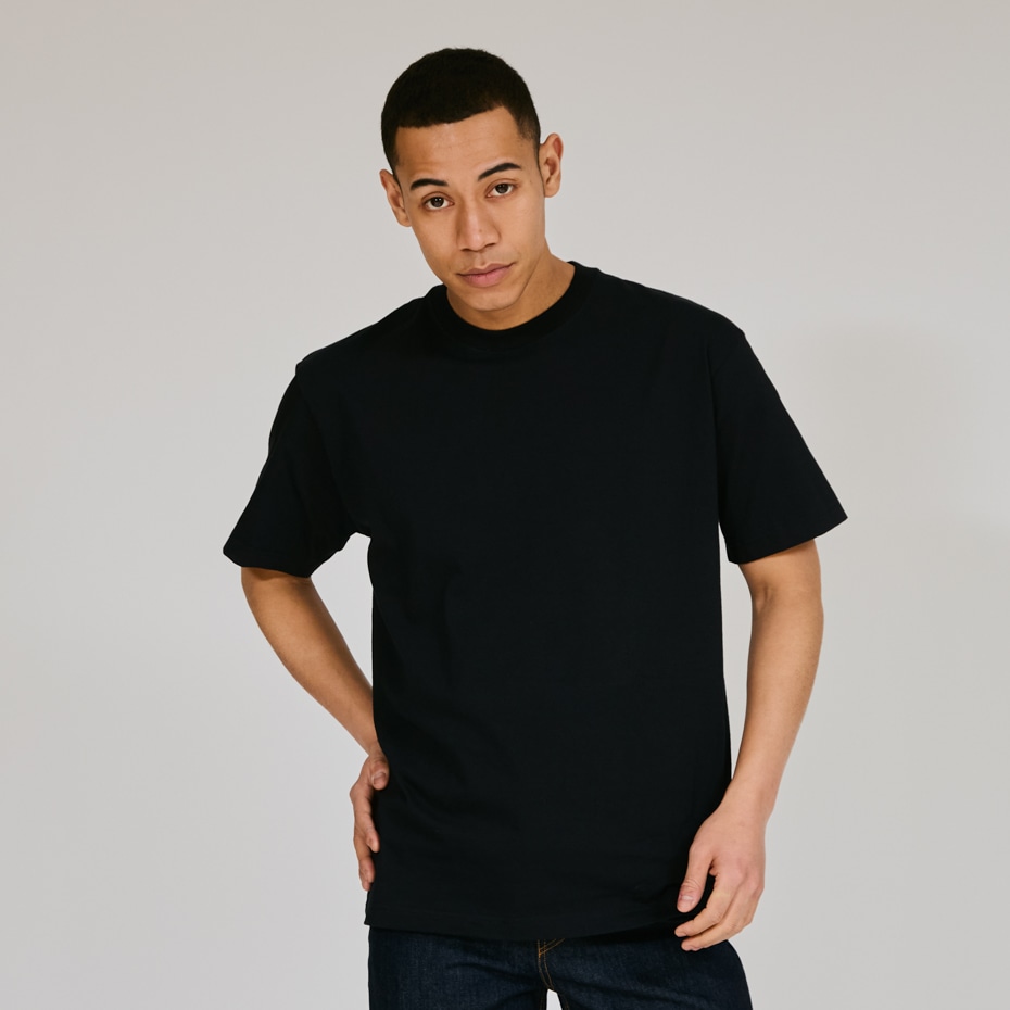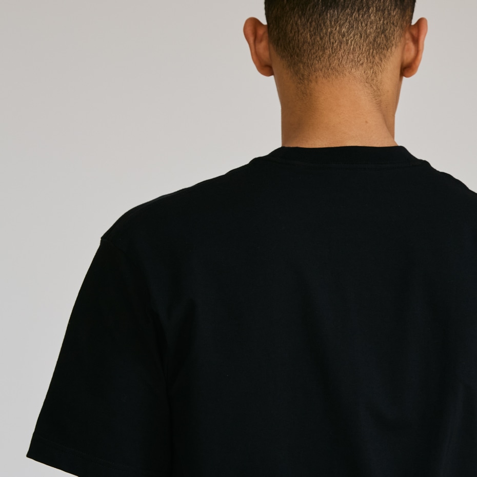 - ヘビーウェイト(肉厚)生地のため、洗いこんでも首周りが伸びにくく型崩れしない強さと耐久性があります。