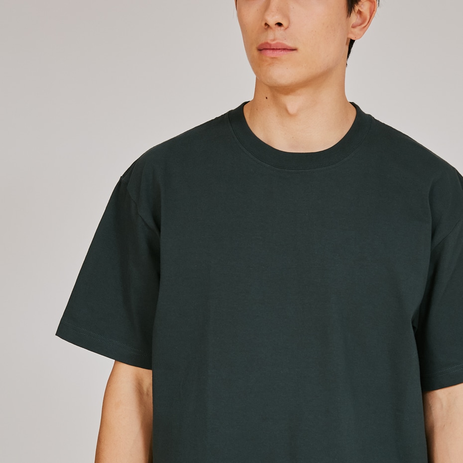 - ヘビーウェイト(肉厚)生地のため、洗いこんでも首周りが伸びにくく型崩れしない強さと耐久性があります。