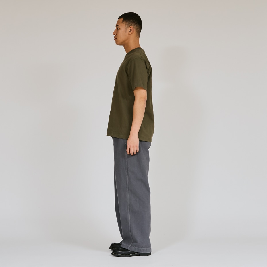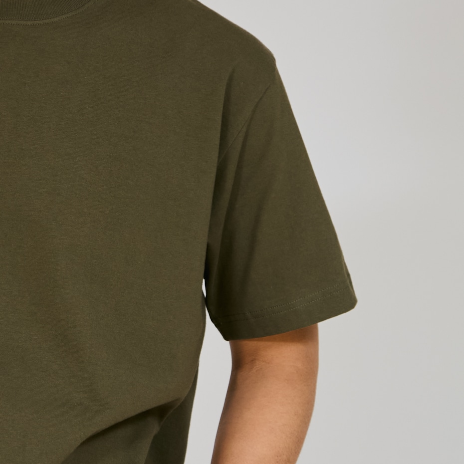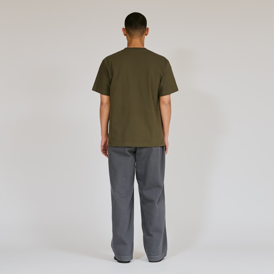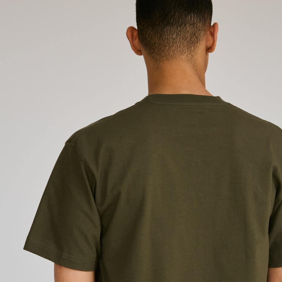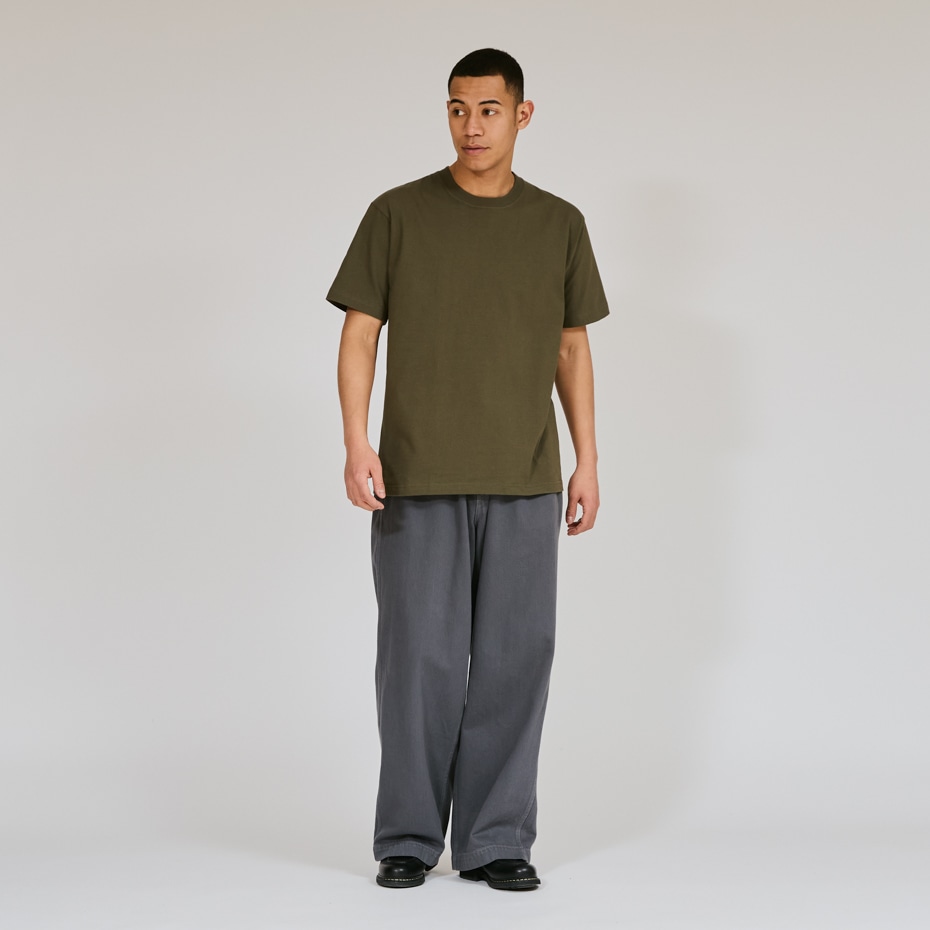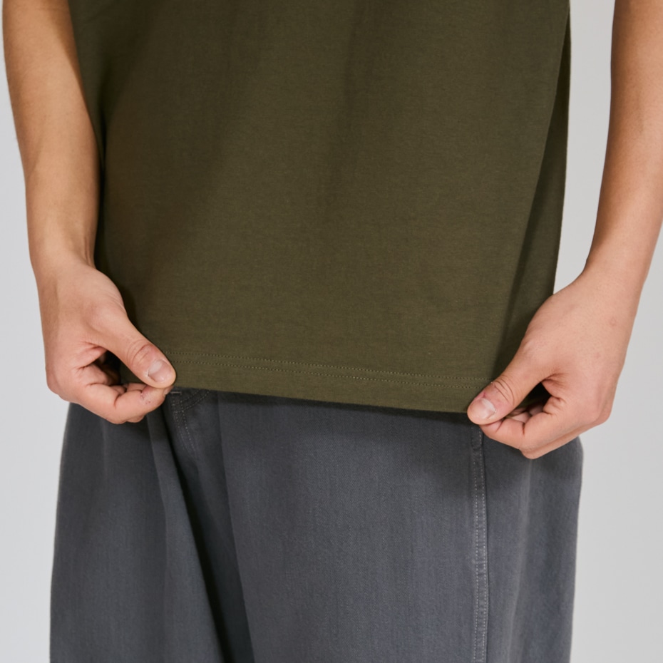 - ヘビーウェイト(肉厚)生地のため、洗いこんでも首周りが伸びにくく型崩れしない強さと耐久性があります。