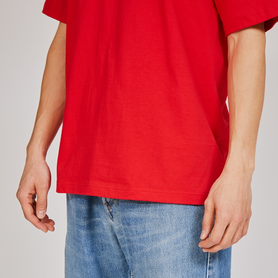 ヘビーウェイト(肉厚)生地のため、洗いこんでも首周りが伸びにくく型崩れしない強さと耐久性があります。