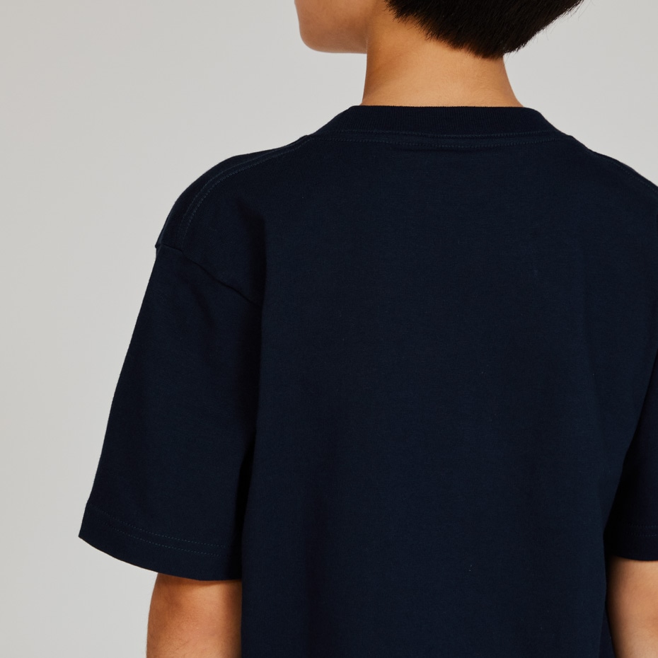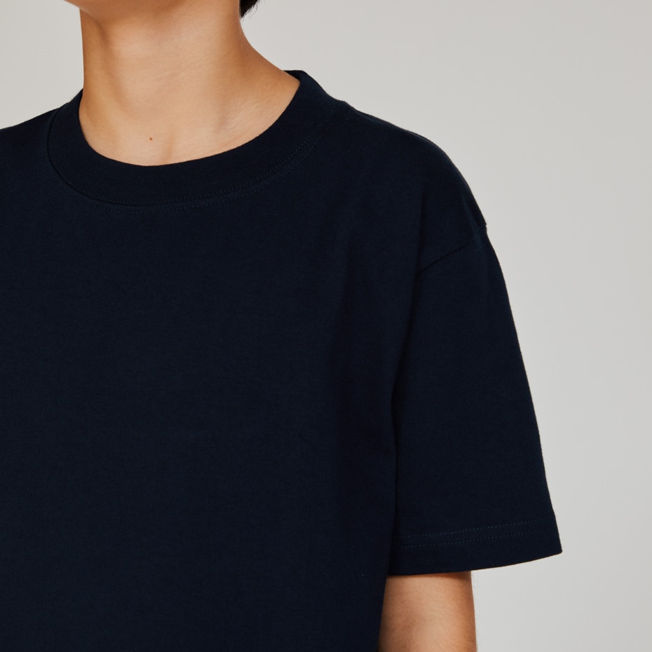 - ヘビーウェイト(肉厚)生地のため、洗いこんでも首周りが伸びにくく型崩れしない強さと耐久性があります。