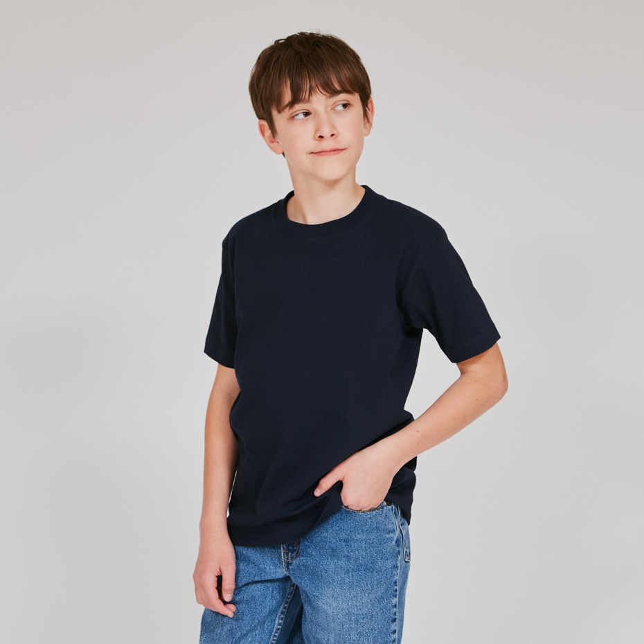 - 襟ネームは熱転写のTAGLESS®(タグレス)仕様で、肌アタリを軽減。
