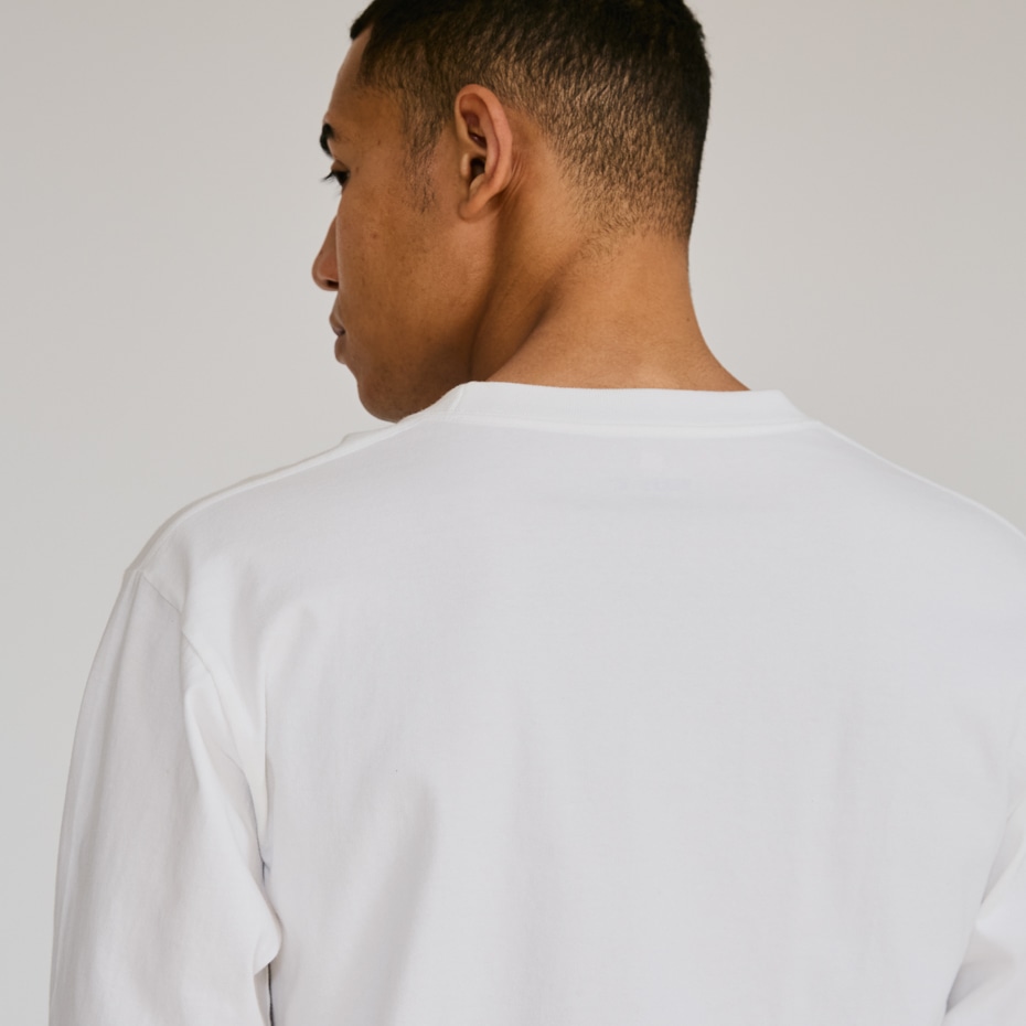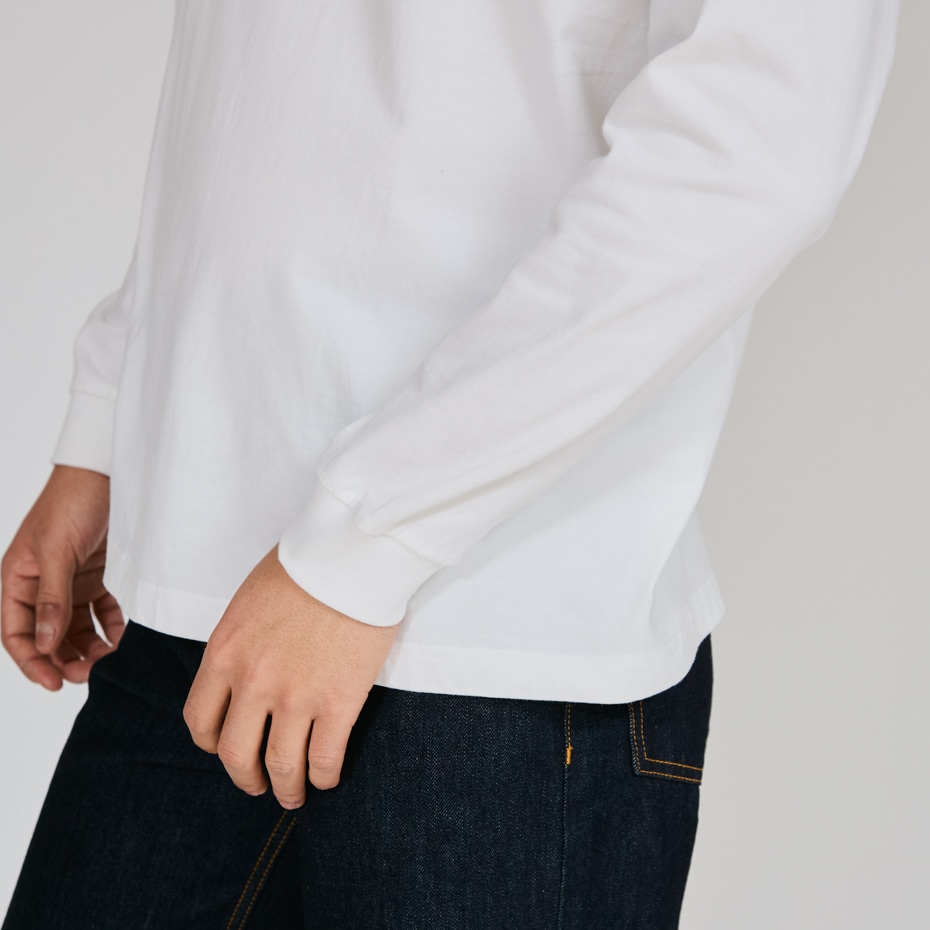 - ヘビーウェイト(肉厚)生地のため、洗いこんでも首周りが伸びにくく型崩れしない強さと耐久性があります。