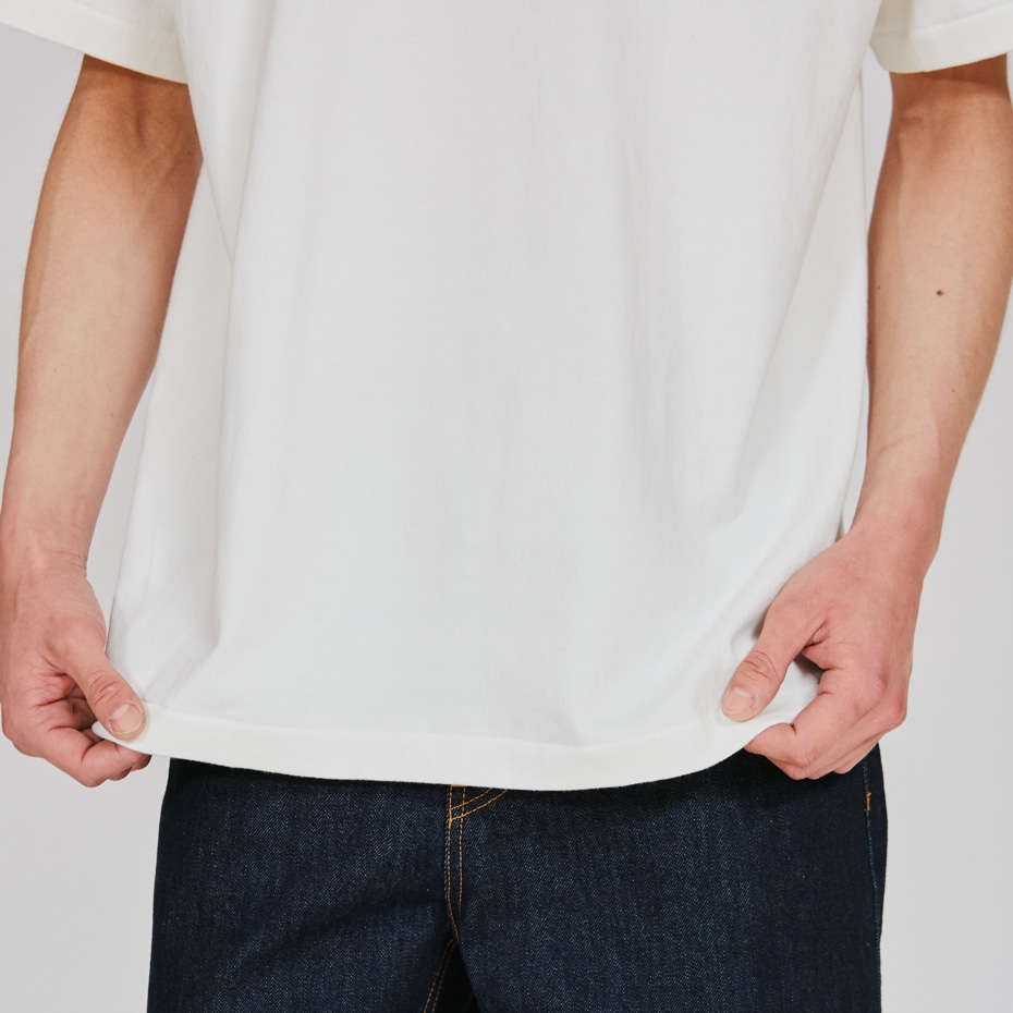 Pack-T(パックT)のパイオニア、Hanes®(ヘインズ)が提案する、“Hanes® T-SHIRTS SHIRO”(ヘインズ Tシャツ シロ) クルーネックTシャツです。生地は3P-T(3枚入りパックTシャツ)赤ラベルで使用している糸を双糸にして編み立てた、厚みと柔らかさを兼ね備えた7.0オンス。カラー展開は独自製法で生み出したこだわりの白の1色です。特徴的なラウンド形状のクルーネック。身幅と袖幅にゆとりを持たせたアメリカンスタイルのシルエット。ストレスを軽減する脇に縫い目のない丸胴仕様。首元にネームデザインを身生地同色でプリントするタグレス仕様で襟ネームの肌当たりを解消した快適な着心地です。袖と裾部分に採用したブラインドステッチによるクリーンな印象。Hanes®のアーカイブをベースにアップデートした、白Tシャツに求められる全ての要素にこだわった“THE BEST OF WHITE-T”(ザ ベスト オブ ホワイト-T)です。パッケージはピクトグラム&ロゴの洗練されたデザインで、環境に配慮された紙資材・インクを使用しています。※同品番でXXLの大きなサイズも展開しています。