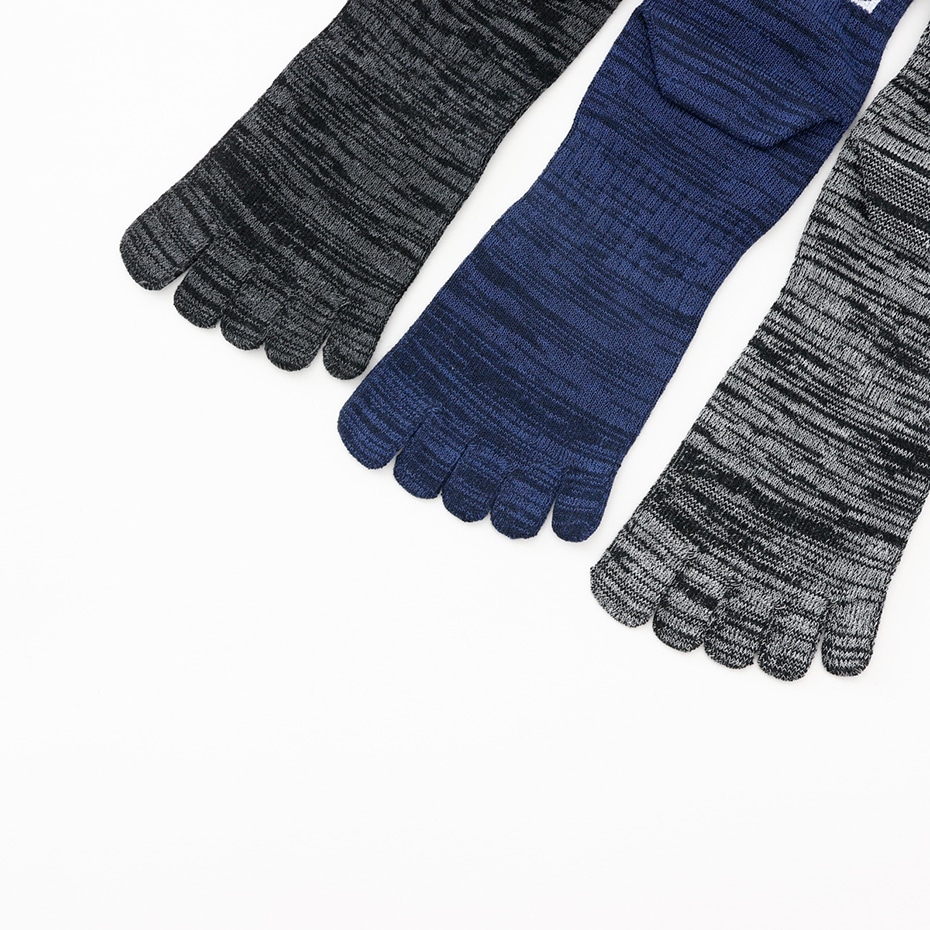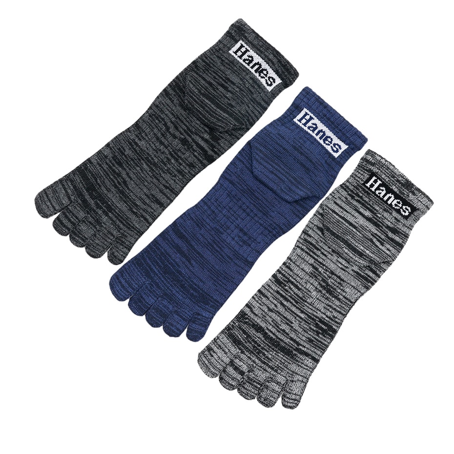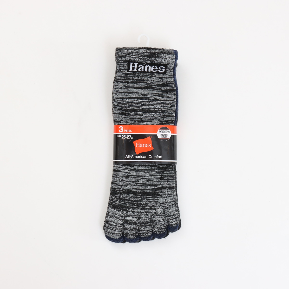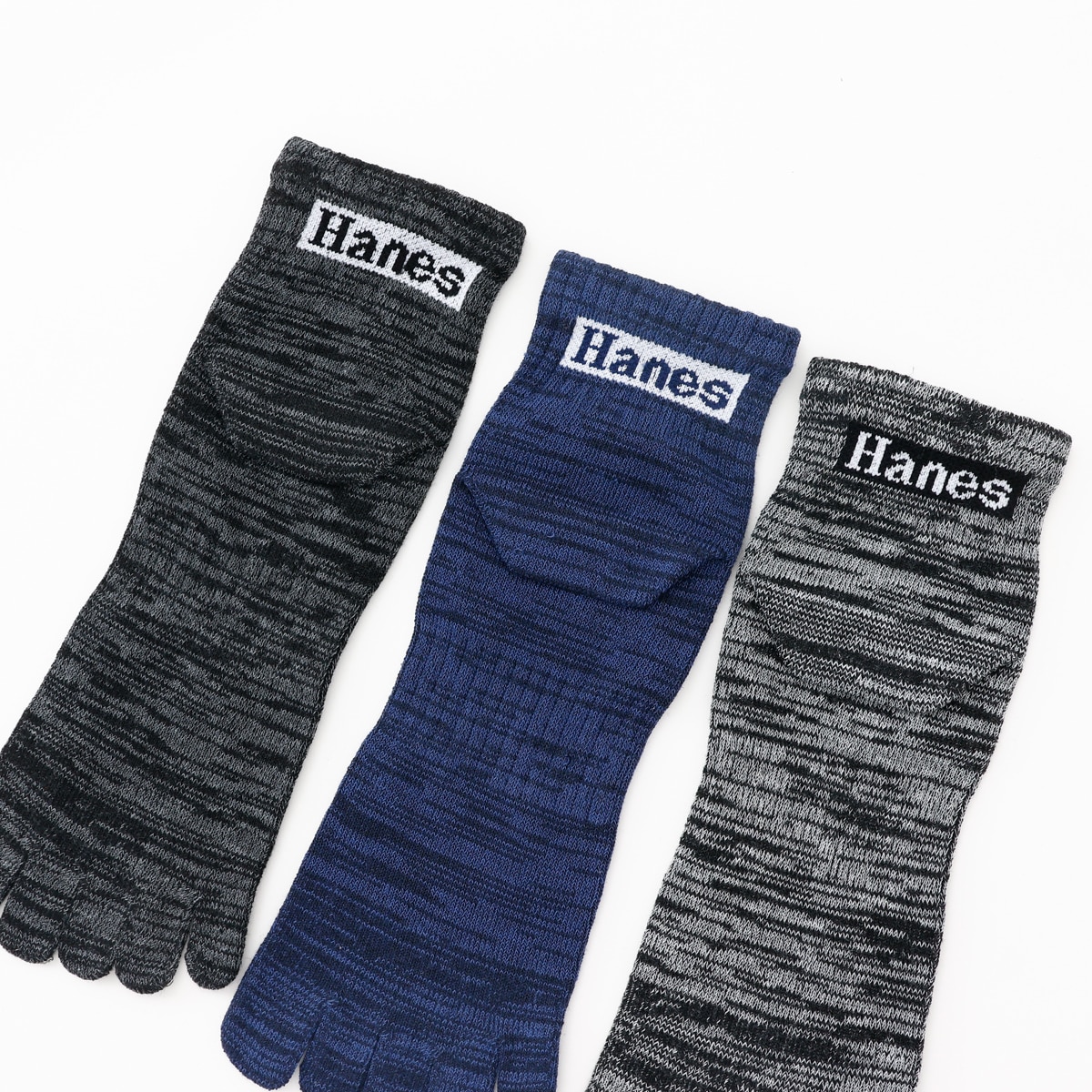 3足組ショートレングス丈ノンパイル仕様の五本指ソックスです。足指の間の汗を吸収し、蒸れを軽減。さらりとした履き心地が特長の抗菌防臭機能付き機能ソックスです。環境に配慮されたリサイクルコットンを使用。足首の後ろ部分に入れたボックス×Hanes®(ヘインズ)ロゴがデザインポイントです。同色と3色カラーアソートの2タイプ。