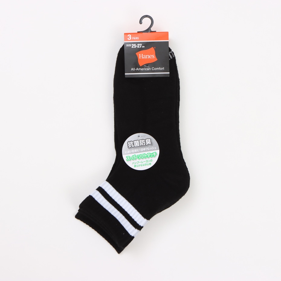3足組 クォーターレングスソックス【ハーフパイル】25FW ヘインズ(HMSCZ202)