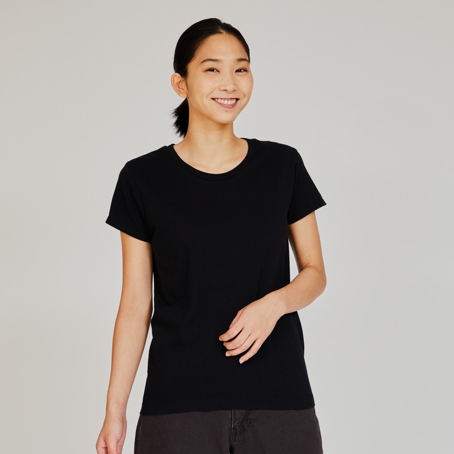 時代のニーズにマッチした厚さと素材感が特長の「透けにくい5.3オンス」を採用。しっかりとした生地でインナーはもちろん、アウターとしても着用できます。