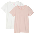 「日本人の心地良さのために」をコンセプトにしたHanes®(ヘインズ)を象徴する、コットン100%の「2P Pack T-Shirt(2枚入りパックTシャツ)」、Japan Fit for HER(ジャパン フィット フォー ハー) クルーネックTシャツのホワイトとブラックのアソートです。時代のニーズにマッチした厚さと素材感が特長の「透けにくい5.3オンス」を使用。ストレスを軽減する脇に縫い目のない丸胴編みで、着用の当初から着慣れた風合いが味わえるガーメントウォッシュ加工をしています。緩やかなネックラインなど日本人女性の体形に合わせたシルエットで絶妙なフィット感を実現しました。インナーとしても、一枚着としても着用できます。