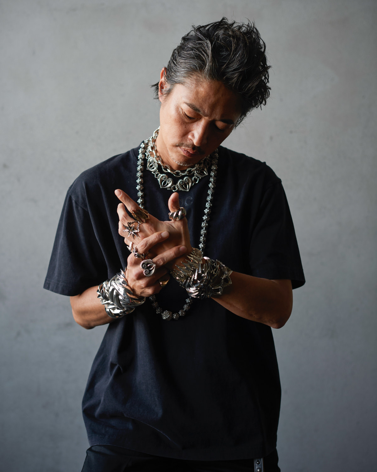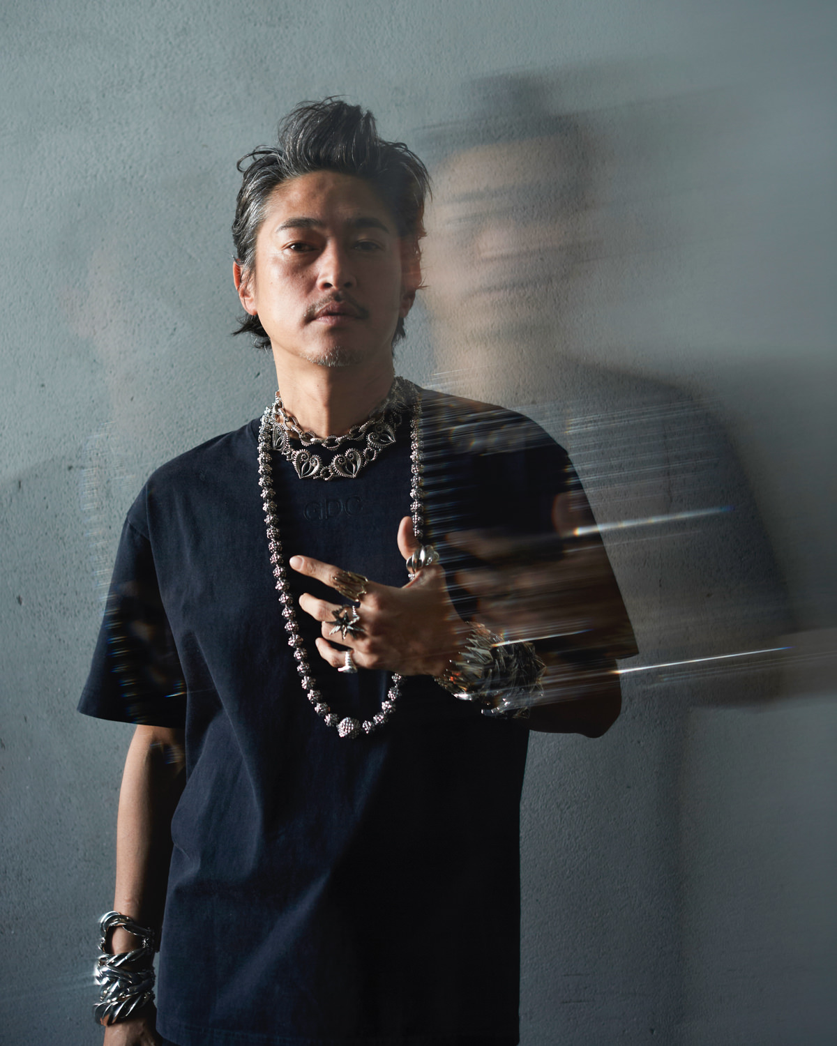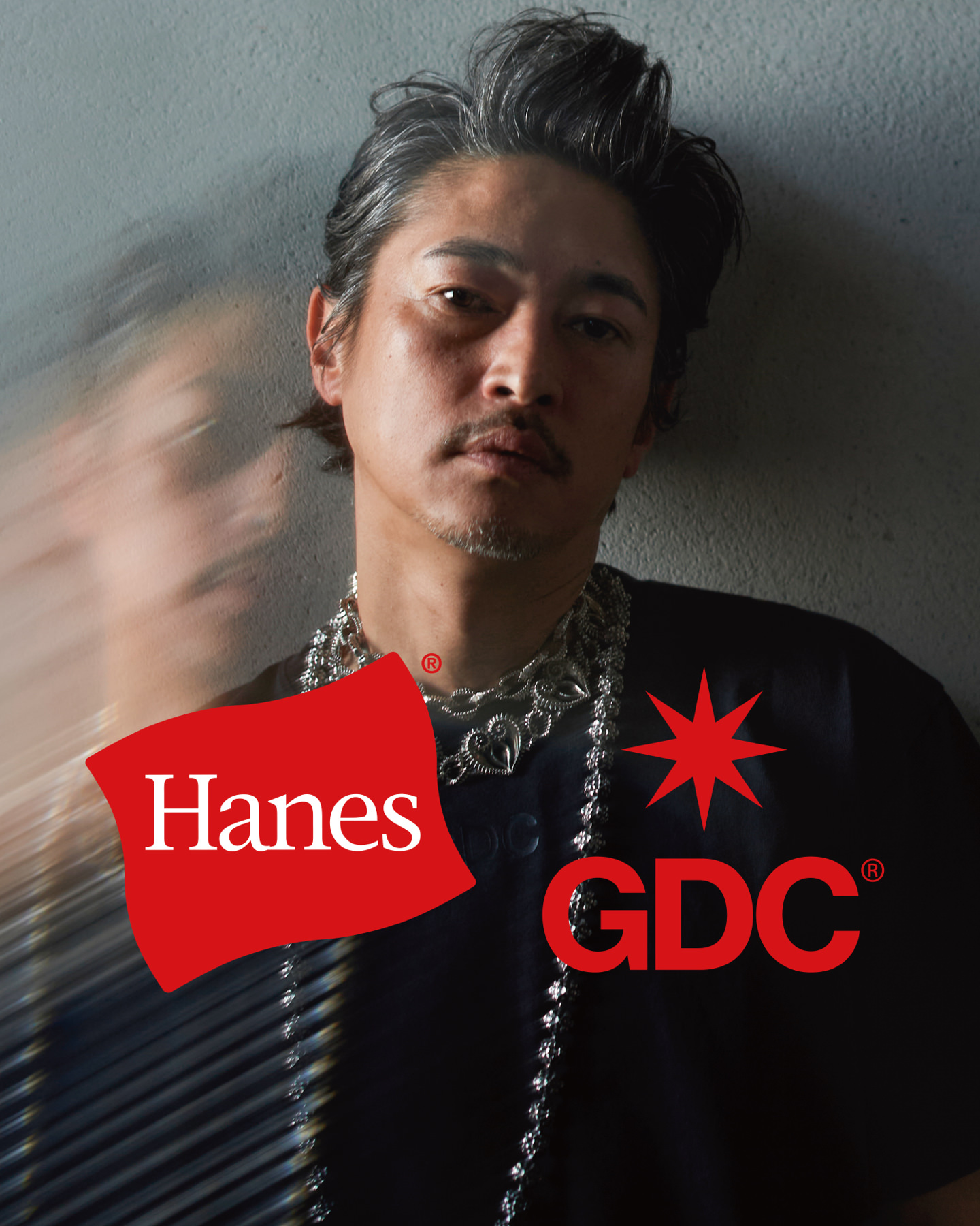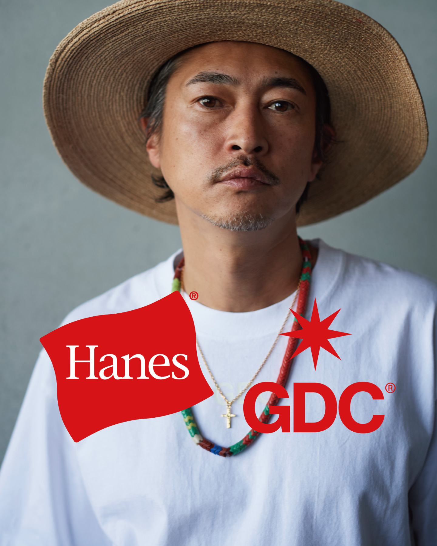 本モデルのキャンペーンビジュアルには、GDC復活時のコラボレーションでも印象的な存在感を放った窪塚洋介氏を再び起用。撮影は熊谷隆志氏が担当し、ベーシックな白Tシャツは削ぎ落としたミニマルな表現で、ブラックTシャツは重厚感のあるスタイリングにより、削ぎ落とした白とは対照的に、存在感と陰影を際立たせた対照的なビジュアルとして構成。両者の関係性だからこそ成立する、静と動のコントラストを感じさせる仕上がりとなっています。