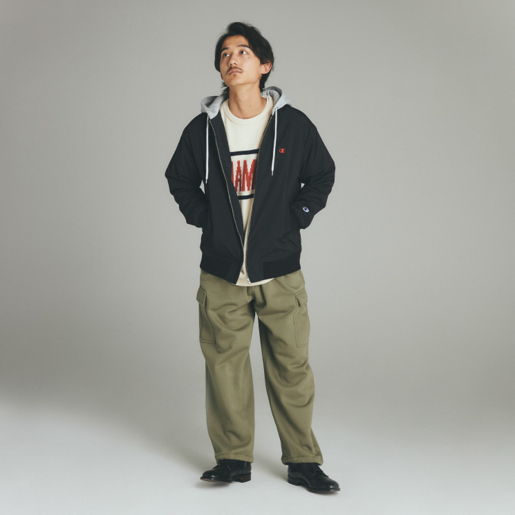 アメカジスタイルはもちろん、他の系統の服にも合わせやすい。アメカジミックスがしたい時はチャンピオンのスウェットを取り入れます。