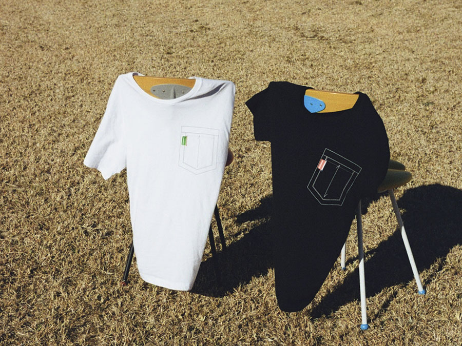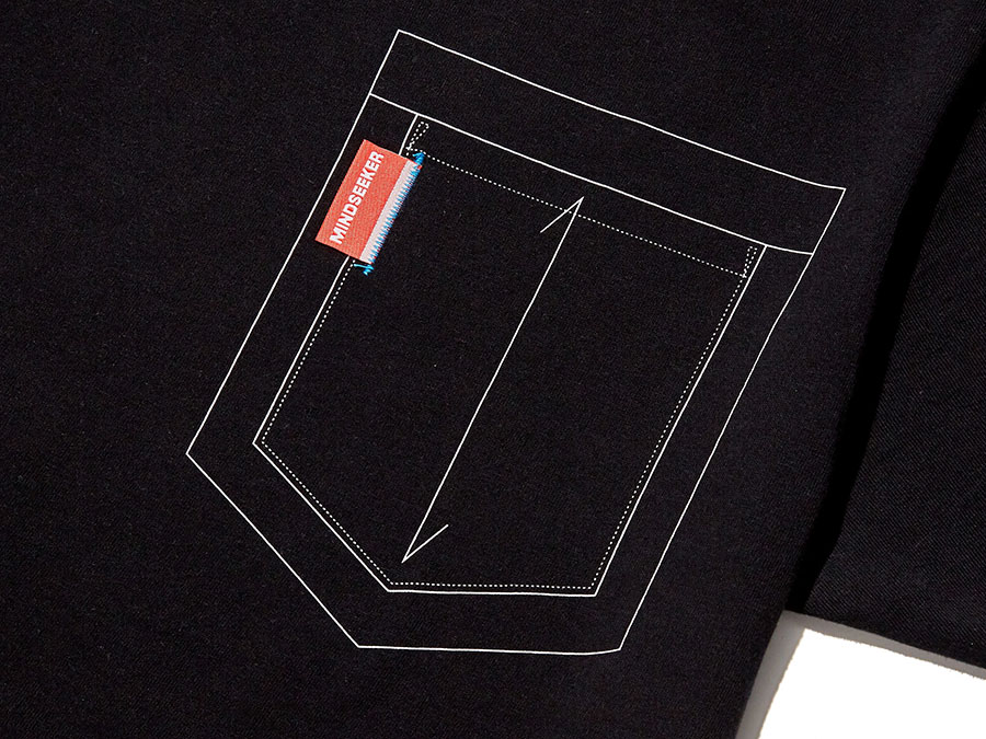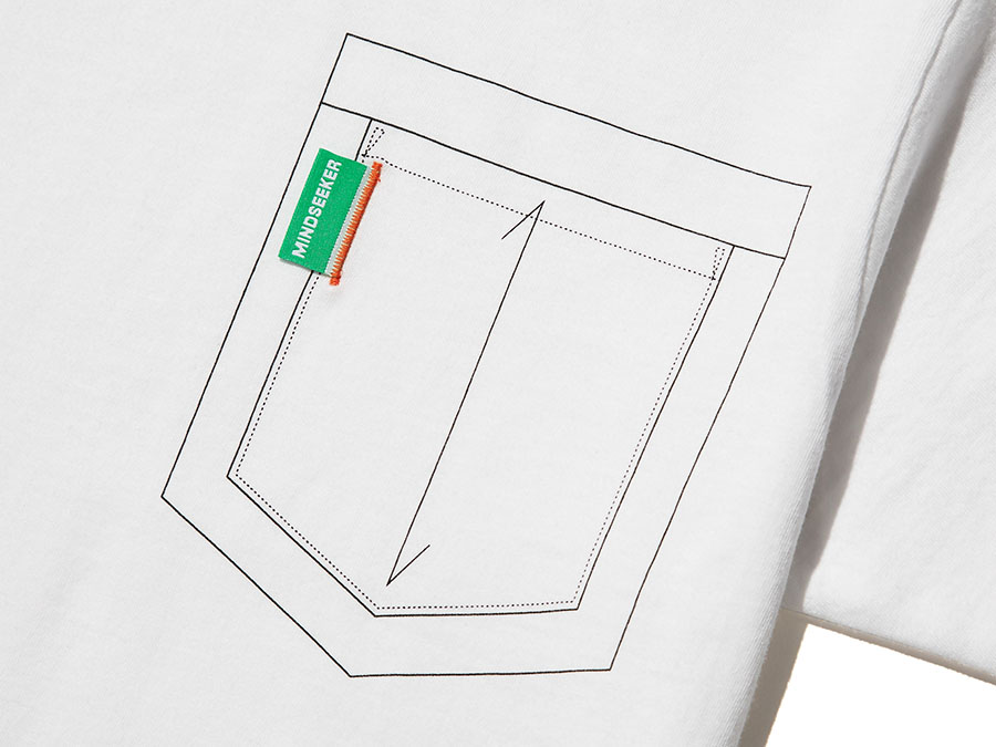 本来存在しない胸ポケットを連想させるパターン画プリントに、