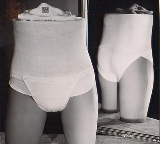 1941年、戦時中でゴムの入手が困難だったため、ブリーフと運動用シャツをスナップでつないだ「フィグリーフスーツ」が開発されました。