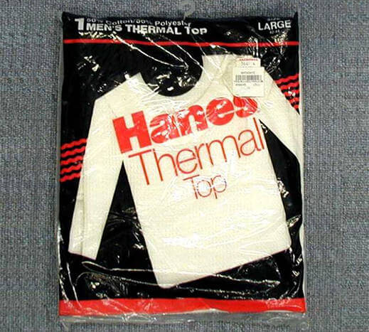 冬用アンダーウェアの定番。この頃になると、ポリエステルを50%混紡させて、型くずれを完全防止と保温性も向上させました。