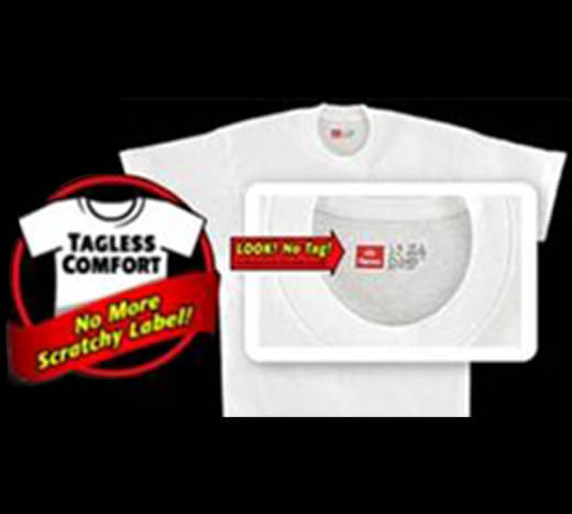 2002年、従来のタグ式ネームを熱転写ネームに替え、首筋の違和感を解消させたタグレス3P-Tシャツを全米で発売します。