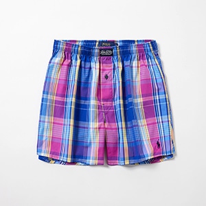 オーガニックコットン100%のトランクスです。平織生地で、表面のなめらかさと光沢のある素材感が特長。ネイビーベースのオーセンティックなチェック柄で、フロントセンターに縫い付けたラベルと、左裾にレッドで入れたブランドアイコンのポロプレイヤー刺繍もポイントです。ブランドロゴを刻印したボタンがさり気ないこだわりです。