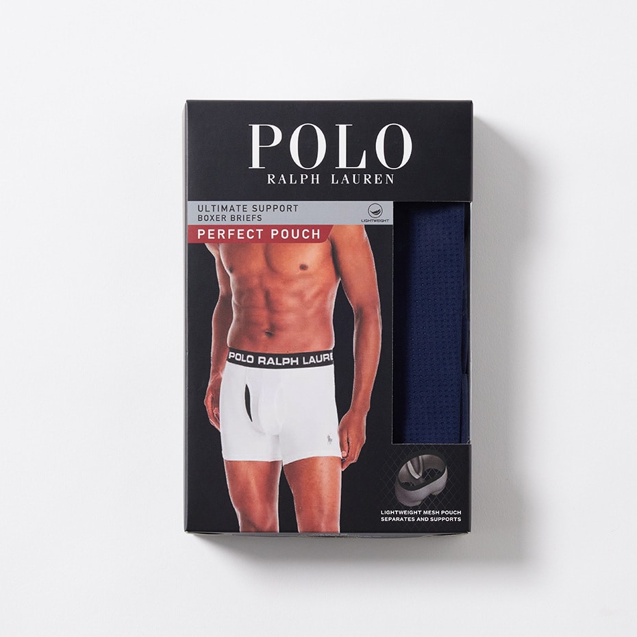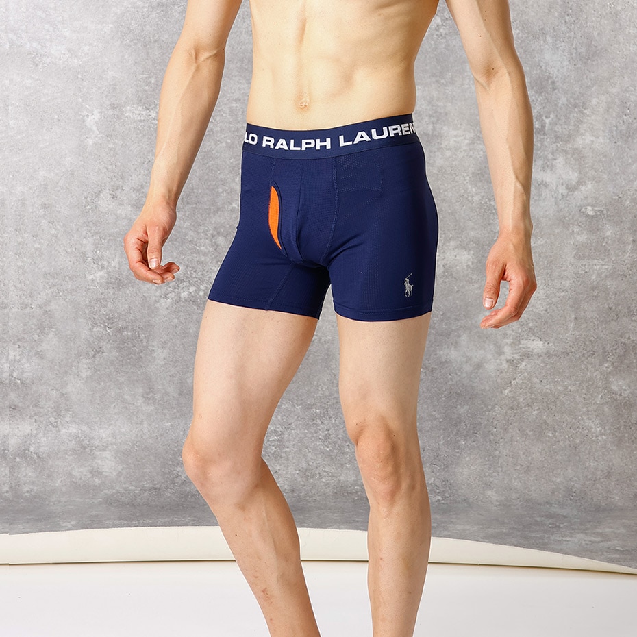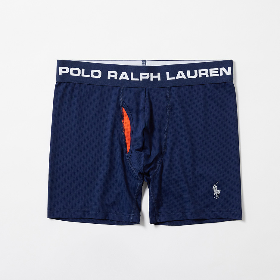 優れた吸汗速乾性とストレッチ性を兼ね備えたナイロンポリウレタンを使用し、メッシュライナー構造「PERFECT POUCH」を採用したポーチボクサーブリーフです。このポーチ状の空間に局部がすっぽりと包みこまれるように収まり一日中抜群の“ポジション”キープを実現し、その結果内腿との接触による擦れを防ぎ、また摩擦によって発生する蒸れも抑制。柔らかくなめらかな肌触りと通気性のあるメッシュ組織が快適さをサポート。太もも部分の汗をしっかりと吸収し、着用時にめくれ上がりにくくした股下設計。ウエストゴムにはスポーティなロゴグラフィックを採用。左裾に入れたブランドアイコンのポロプレイヤープリントもポイントです。前開き仕様。