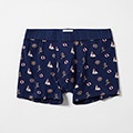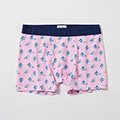 オーガニックコットンを使用したコットンストレッチボクサーブリーフです。柔らかな質感と伸縮性を兼ね備えた快適な着心地が特長。ネイビーベースにはマリンモチーフを、ピンクベースにはエンゼルフィッシュモチーフをオールオーバープリントした、ギフトにも最適なアイテムです。前開き仕様。*3Lの大きなサイズ(RM3-B102K)と、股上が浅めのショートボクサータイプ(RM3-B102S)も展開しています。