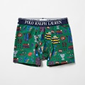 オーガニックコットンを使用したコットンストレッチボクサーブリーフです。柔らかな質感と伸縮性を兼ね備えた快適な着心地が特長。グリーンベースにクレスト(紋章)やラグビーシャツ、ブレザーなどPOLOの伝統的なモチーフをプリントした、ギフトにも最適なアイテムです。前開き仕様。*股上が浅めのショートボクサーデザイン(RM3-C106S)も展開しています。