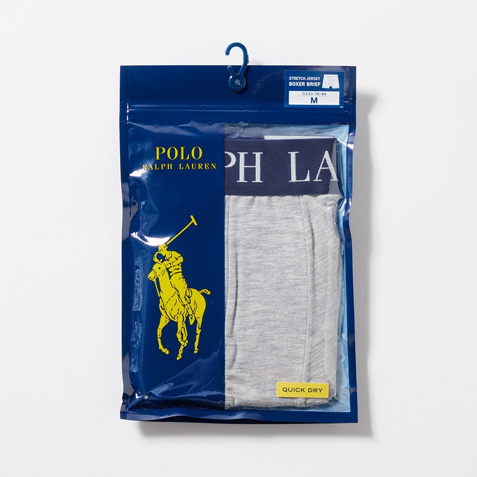 優れた吸汗速乾機能とストレッチ性を兼ね備えた肌に優しい綿混素材(ストレッチジャージー)によるボクサーブリーフです。ソフトな肌触りと快適な着心地が特長。左裾に入れたブランドアイコンのポロプレイヤープリントと、ウエストのバックセンターに付けたポロプレイヤーとロゴのラベルもポイントです。ウエストゴムのフロントに「POLO RALPH LAUREN(ポロ ラルフ ローレン)」のロゴを入れたインパクトのあるデザイン。前閉じ仕様です。パッケージには植物由来のエコロジカルな材質を使用しています。