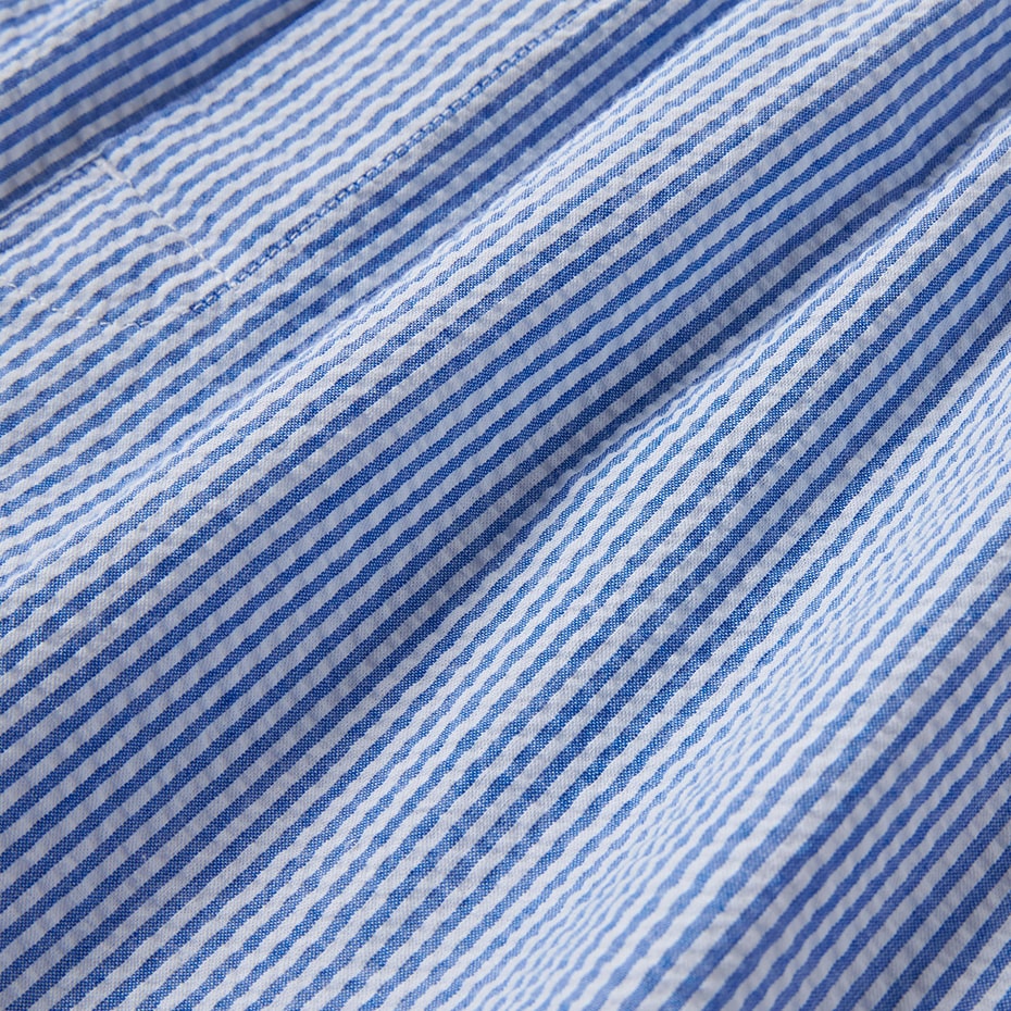 オーガニックコットン100%のシアサッカー生地を使用したトランクスです。生地表面に凹凸のある構造がもたらす、清涼感のある着心地が特長。爽やかなストライプ柄で、フロントセンターに縫い付けたラベルと、左裾に入れたブランドアイコンのポロプレイヤー刺繍がポイント。ブランドロゴを刻印したボタンもさり気ないこだわりです。前開き仕様。*3Lの大きなサイズ(RM4-B104K)も展開しています。