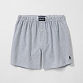 オーガニックコットン100%のシアサッカー生地を使用したトランクスです。生地表面に凹凸のある構造がもたらす、清涼感のある着心地が特長。爽やかなストライプ柄で、フロントセンターに縫い付けたラベルと、左裾に入れたブランドアイコンのポロプレイヤー刺繍がポイント。ブランドロゴを刻印したボタンもさり気ないこだわりです。前開き仕様。*3Lの大きなサイズ(RM4-B104K)も展開しています。