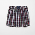 オーガニックコットン100%のトランクスです。平織生地で、表面のなめらかさと光沢のある素材感が特長。ブラックベースのオーセンティックなチェック柄で、フロントセンターに縫い付けたラベルと、左裾にレッドで入れたブランドアイコンのポロプレイヤー刺繍もポイントです。ブランドロゴを刻印したボタンがさり気ないこだわりです。前開き仕様。