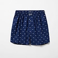 オーガニックコットン100%のトランクスです。平織生地で、表面のなめらかさと光沢のある素材感が特長。フロントセンターに縫い付けたラベルがポイントで、ブランドロゴを刻印したボタンもさり気ないこだわりです。ネイビーベースに羽の付いたPRLロゴモチーフをプリントした、ギフトにも最適なアイテムです。前開き仕様。*3Lの大きなサイズ(RM4-C204K)も展開しています。