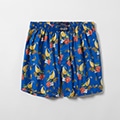 コットン100%の平織生地のトランクスです。なめらかで光沢のある素材感が特長で、カーボンピーチ加工により柔らかな風合いを加えています。ブルーにハイビスカスと帆をあしらった、夏らしいトロピカルプリント。ブランドロゴを刻印したボタンもさり気ないこだわりです。前開き仕様。