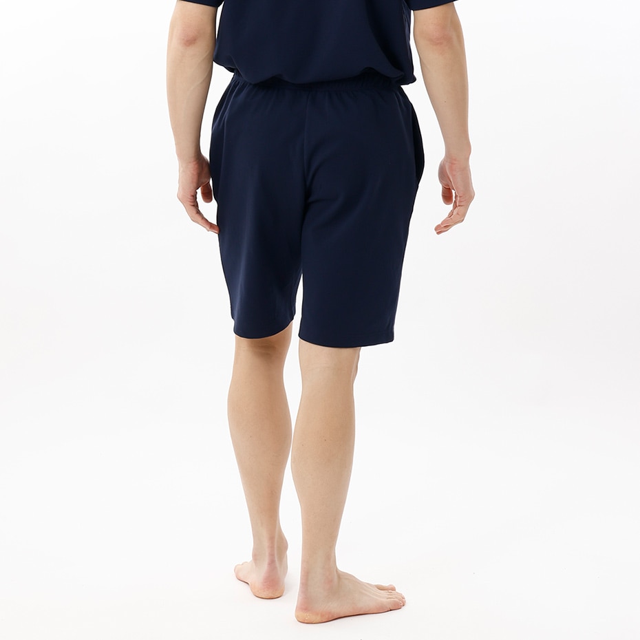 コットンをベースに、環境に配慮されたリサイクルポリエステルを混紡した鹿の子素材を使用したスリープショートパンツです。高いストレッチ性とソフトな肌触りがもたらす心地良いフィット感が特長で、フロントセンターに縫い付けたラベルと、左脇に入れたロゴグラフィックもポイント。同素材を使用したショートスリーブノッチカラーシャツ(RM8-B203K)も展開しているので、セットアップでの着用もオススメです。*3Lの大きなサイズの商品です。