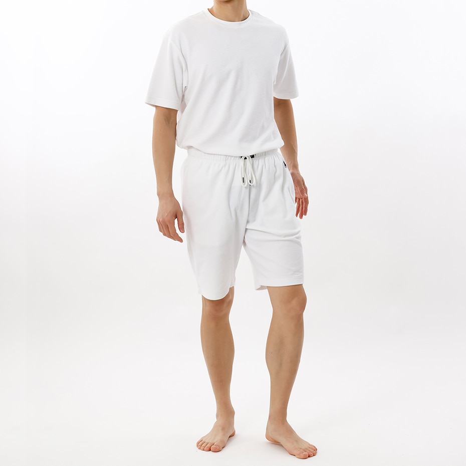 コットンをベースに、環境に配慮されたリサイクルポリエステルを混紡したテリークロス(パイル)素材を使用したスリープショートパンツです。柔らかな風合いの心地良い肌当たりも魅力。乾きやすさと軽い着心地も特長です。フロントセンターに縫い付けたラベルと、左ウエスト部分に入れたブランドアイコンのポロプレイヤー刺繍もポイントです。同素材を使用したショートスリーブクルーネックシャツ(RM8-B204)、ショートスリーブジョニーカラー(スキッパー)シャツ(RM8-B205)も展開しているので、セットアップでの着用もオススメです。