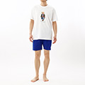 オーガニックコットン100%の天竺生地を使用した、ショートスリーブクルーネックシャツとスリープショートパンツのスリープウェアセットです。肌触りの柔らかい、快適な着心地が特長です。トップスは着丈と身幅にゆとりを持たせたリラックスフィットで、前身頃にアイコニックなPOLOベア(タヒチベア)をプリント。ボトムスはシーズナルカラーのブルー無地で股下寸法を膝上丈に設定したスタイリッシュなデザインで、フロントセンターに縫い付けたラベルもポイント。両サイドにポケット付き。