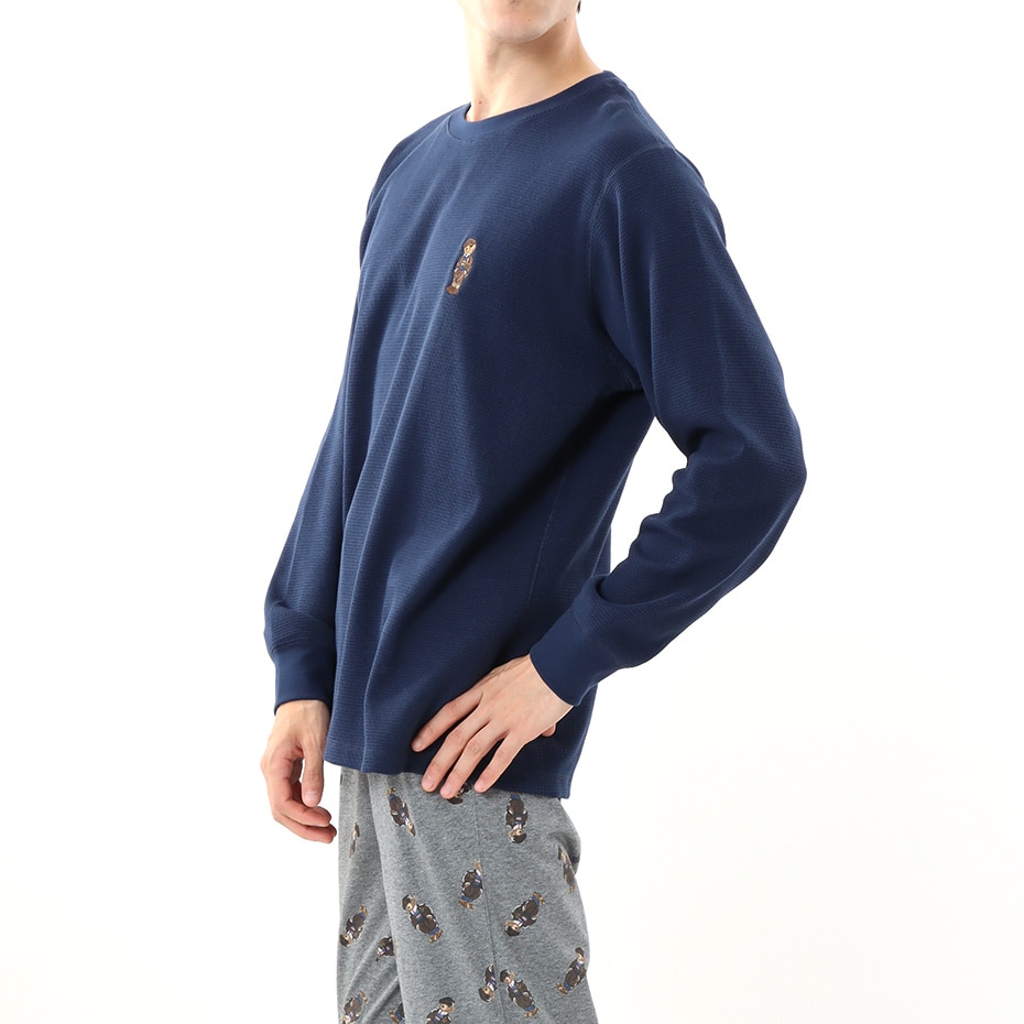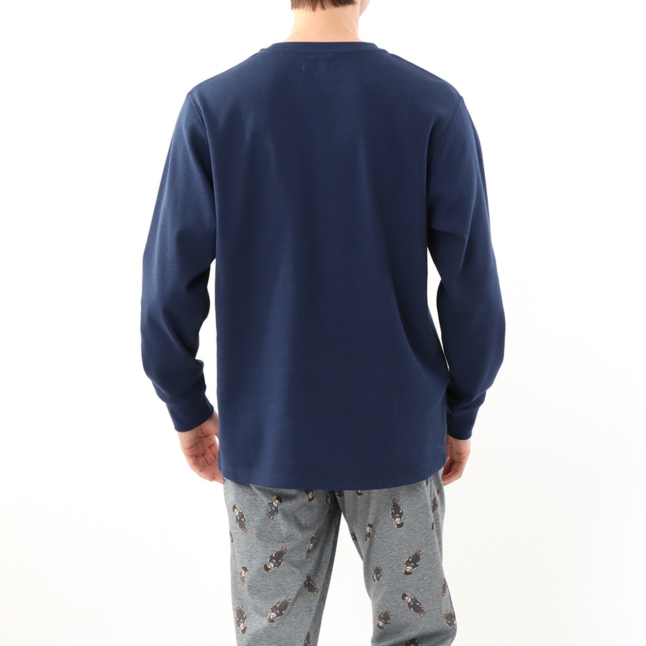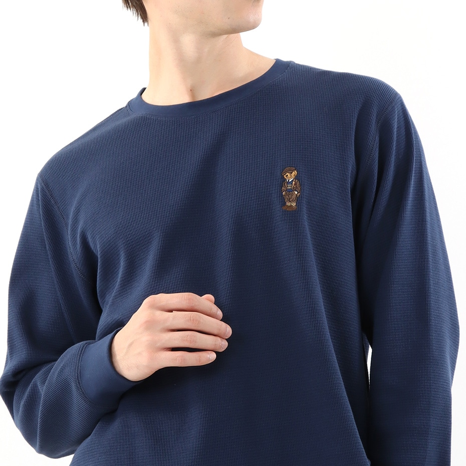 コットン60%ポリエステル40%のワッフル編地のロングスリーブクルーネックシャツです。左胸に入ったアイコニックな今シーズンのPolo Bear(ヘリテージアイコンベア)の刺繍がポイントのギフトにも最適なアイテムです。袖口はリブ仕様で保温性を高めるとともにスタイリッシュなルックスを兼ね備えています。環境に配慮したリサイクルポリエステル使用。同モチーフのPolo Bear(ヘリテージアイコンベア)をオールオーバープリントしたスリムパンツ(RM8-W105)とのセットアップも可能で、幅広いライフスタイルに応えるアイテムです。