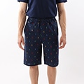 オーガニックコットン100%を使用したスリープショートパンツです。表面がなめらかで光沢のある平織生地を採用。リラックスフィットのひざ丈で、日常的な動きにもスムーズに対応します。フロントセンターに縫い付けたラベルと、マルチカラーで入れたポロプレイヤーオールオーバープリントがポイントの、ギフトにも最適なアイテムです。両サイドにポケット付き。
