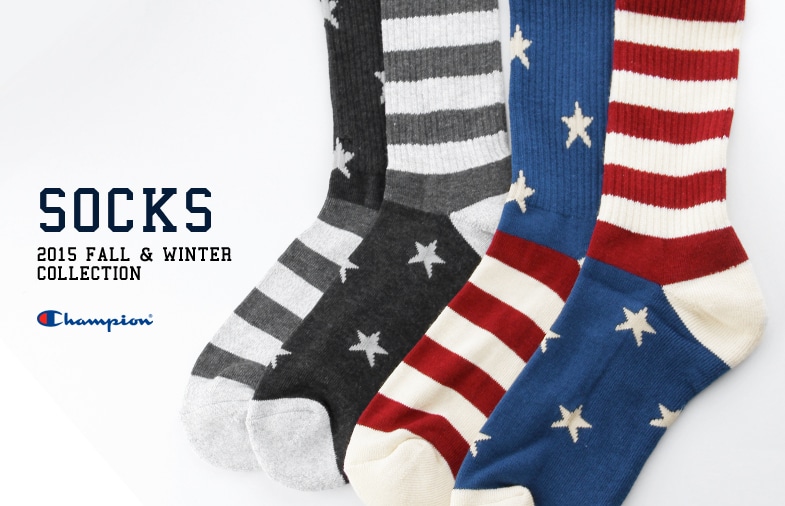 チャンピオンの2015年秋冬コレクションの新作ソックスが入荷しました。 ワンポイントでシンプルなデザインのアイテムから星条旗やカモフラ柄などデザイン性の高いアイテムなど、メンズ・ウィメンズ・キッズのバリエーション豊富な新作コレクションが揃いました。